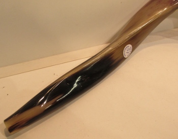 Clear High Gloss Finish applied to the Outside of the Shofar to give it a Brilliant Shine and to the Inside to reduce odor. This is the Rolls Royce of Shofars! This 51" Professional Odorless Natural Bass Note Shofar is the Biggest one we have ever had. This Shofar Measures a Full 39" in a Straight Line Huge Body Size Extra Large 10 Inch Bell Large Easy Play Mouthpiece Professional Musical Instrument Sound Quality Loud, Low Rumbling Bass Note Awesome Sound! One of the Best Sounding Shofars we have ever had! Be sure to call and hear this one 219-762-7589. $3333 - #BASS51YEMPR ***SOLD***