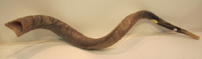 Clear High Gloss Finish applied to the Outside of the Shofar to give it a Brilliant Shine and to the Inside to reduce odor. This is the Rolls Royce of Shofars! This 51" Professional Odorless Natural Bass Note Shofar is the Biggest one we have ever had. This Shofar Measures a Full 39" in a Straight Line Huge Body Size Extra Large 10 Inch Bell Large Easy Play Mouthpiece Professional Musical Instrument Sound Quality Loud, Low Rumbling Bass Note Awesome Sound! One of the Best Sounding Shofars we have ever had! Be sure to call and hear this one 219-762-7589. $3333 - #BASS51YEMPR ***SOLD***